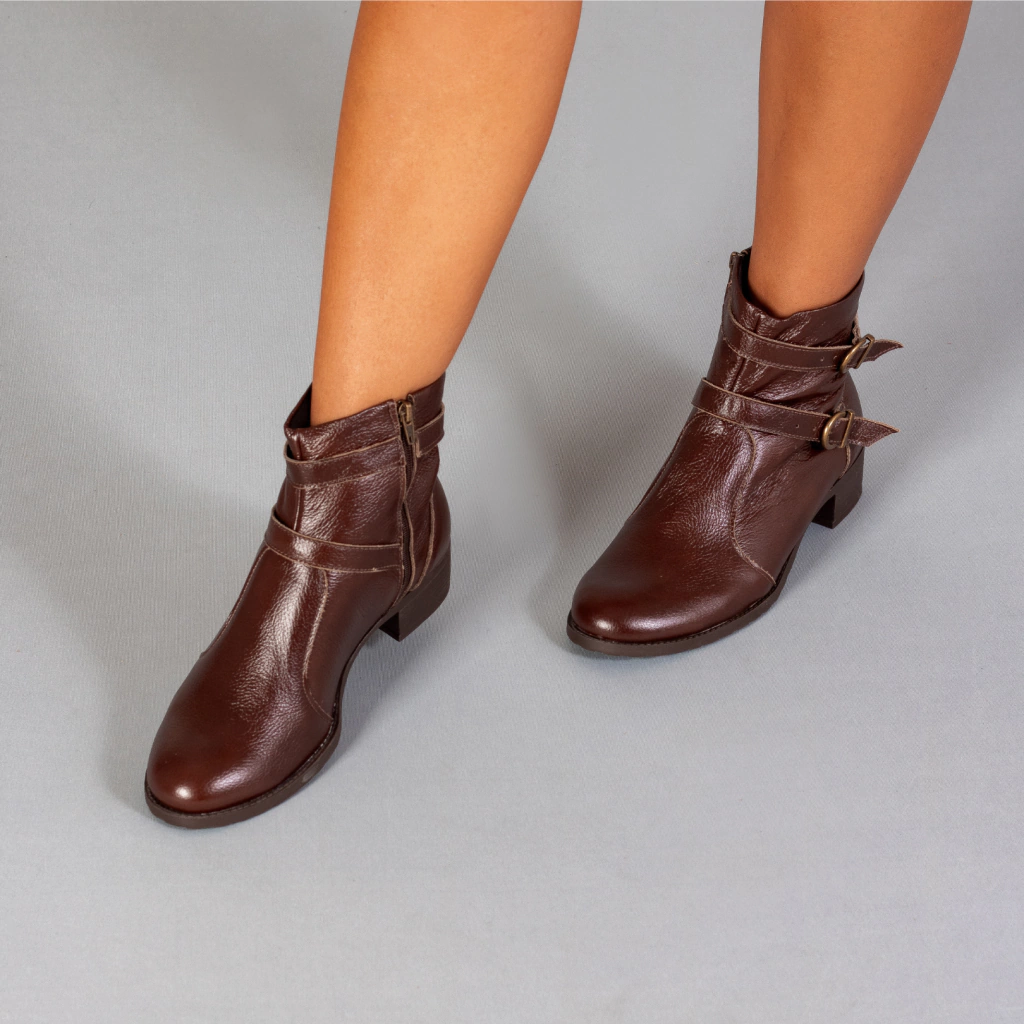 A Bota Alice é a escolha ideal para mulheres que buscam uma bota feminina que combina estilo, conforto e durabilidade. Feita em couro legitimo, esta bota de cano baixo é perfeita para quem deseja um calçado versátil, que complementa looks casuais ou mais sofisticados com elegância.
